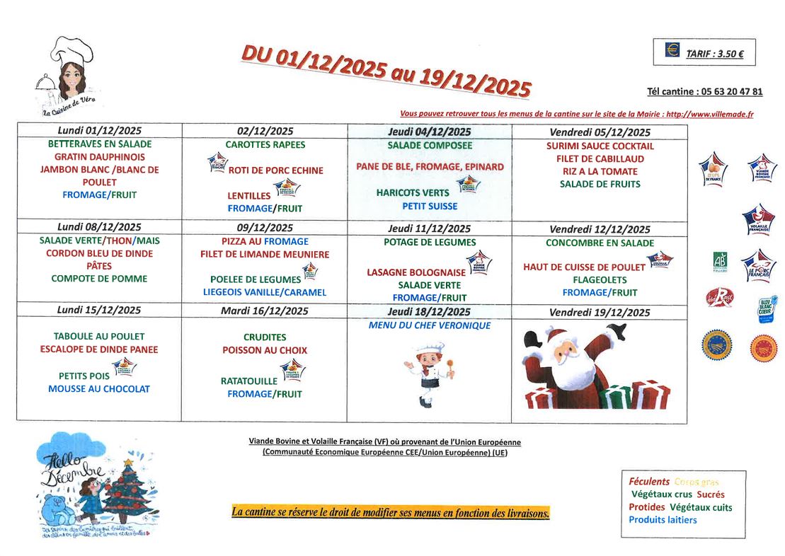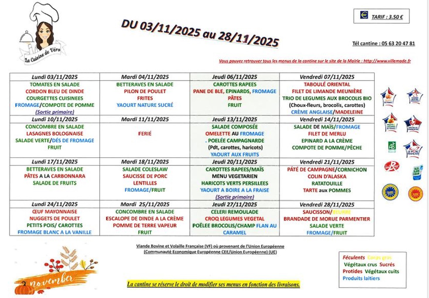 Prix des repas : reste à charge par repas pour les élèves 3.50€ - pour les adultes 7.00€